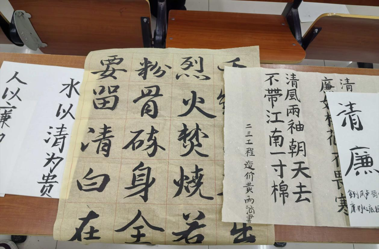 11月举办“书法行知廉,墨韵书清风”廉洁书法活动,同学们以笔墨书写廉洁格言,在书法艺术中感悟清廉精神,让清风正气跃然纸上。