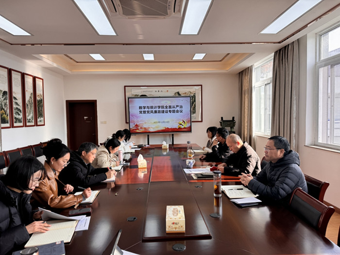 12月19日上午,数学与统计学院在横江校区教学楼1410会议室召开全面从严治党暨党风廉政建设专题会议。会议由党总支副书记刘双四主持,学院领导班子成员、党总支委员、全体行政人员、党支部书记及教研室主任参加会议。